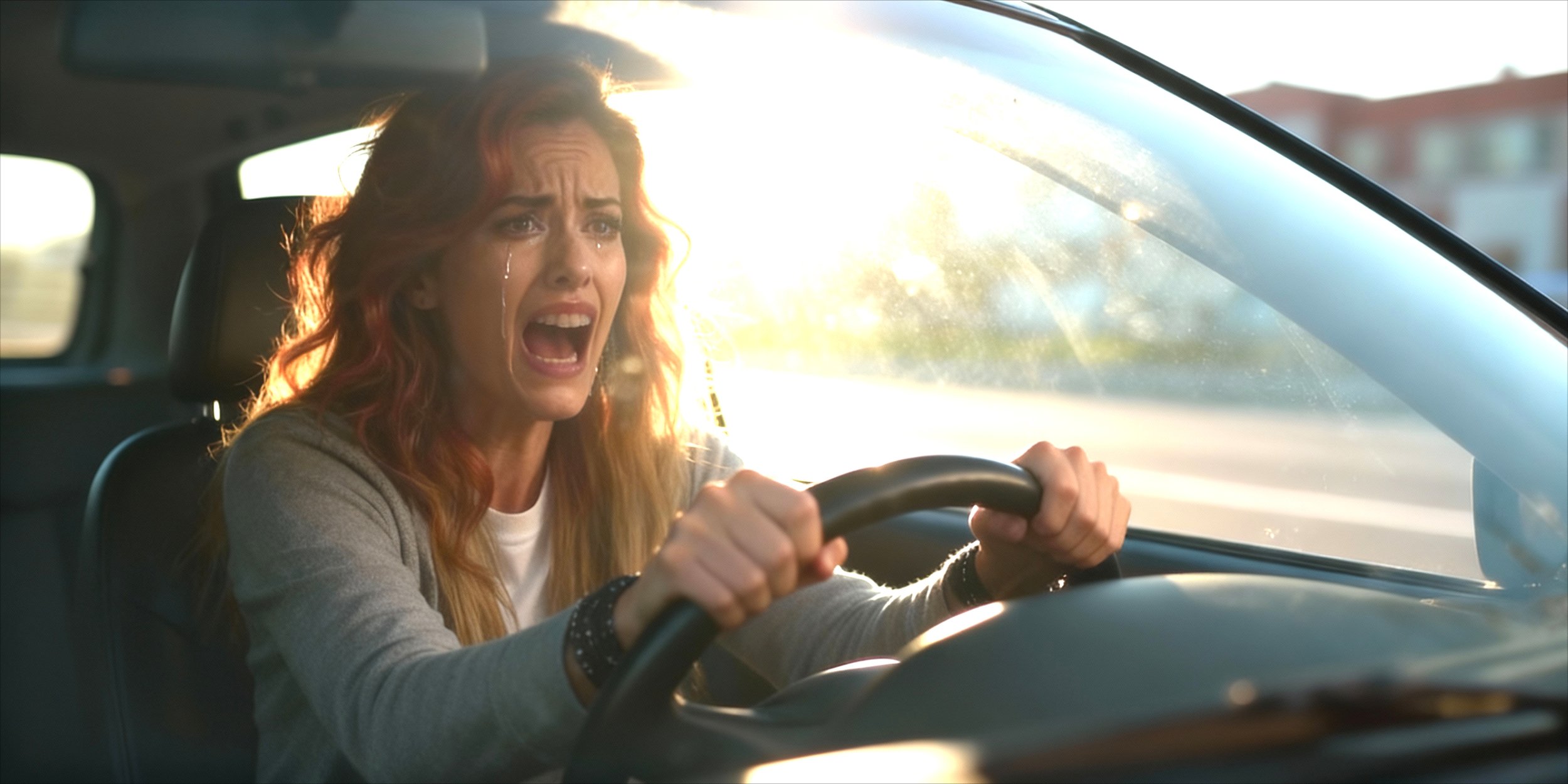 A woman in her mid-30s — MARISSA — sits in her car, hands trembling.