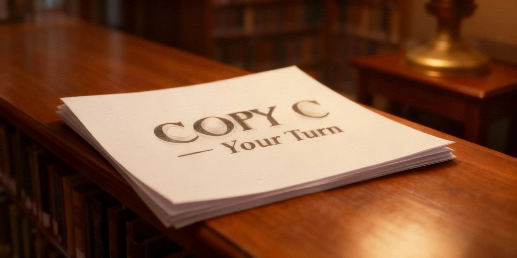 He gathers his copy.